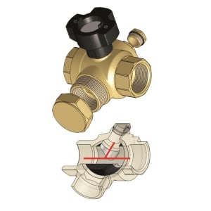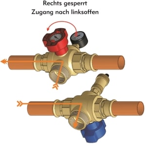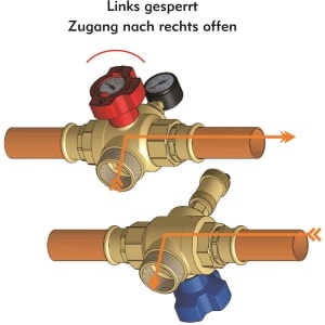 - Jeder der vier Abgänge ist absperrbar, wobei die restlichen drei „offen“ sind.