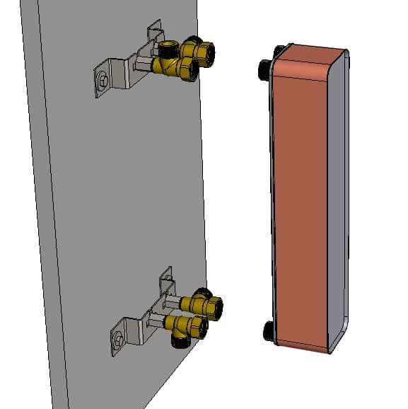 Für die einfache und professionelle Befestigung und Einbindung von Plattenwärmetauschern von ¾“ AG bis 1¼“ AG an der Wand.